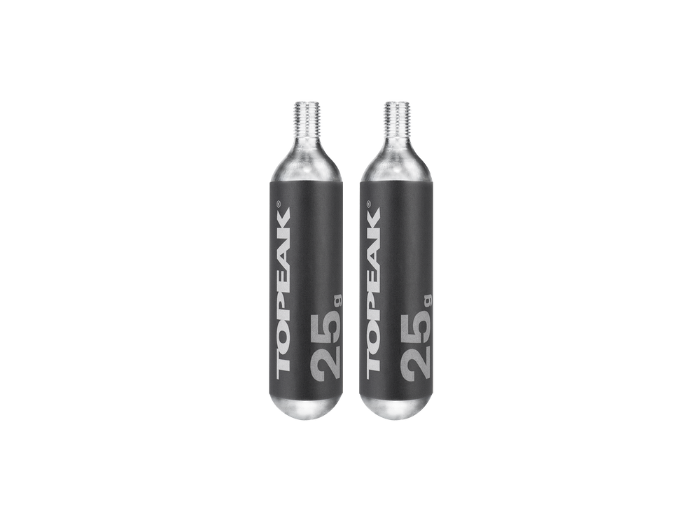 25 g CO₂-Gewindekartuschen (2 Stück). Für Topeak HybridRocket MT, AirBooster und Micro AirBooster. Optimal geeignet für 29″ Bereifung.