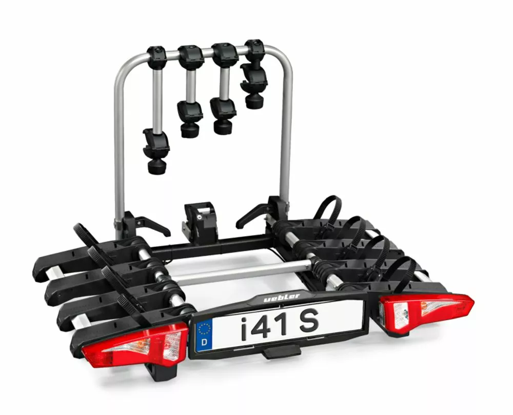 Die neuen Träger der i-Serie sind die leichtesten und kompaktesten Träger von Uebler – und sie sind komplett zusammenklappbar. Er passt sogar bequem in nahezu jeden Kofferraum. Dank des patentierten Klappsystems lassen sich Rückleuchten, Fahrradschienen und Trägerrahmen komplett ein- und umklappen. Dabei ist er speziell auf den Transport schwerer Fahrräder ausgelegt.