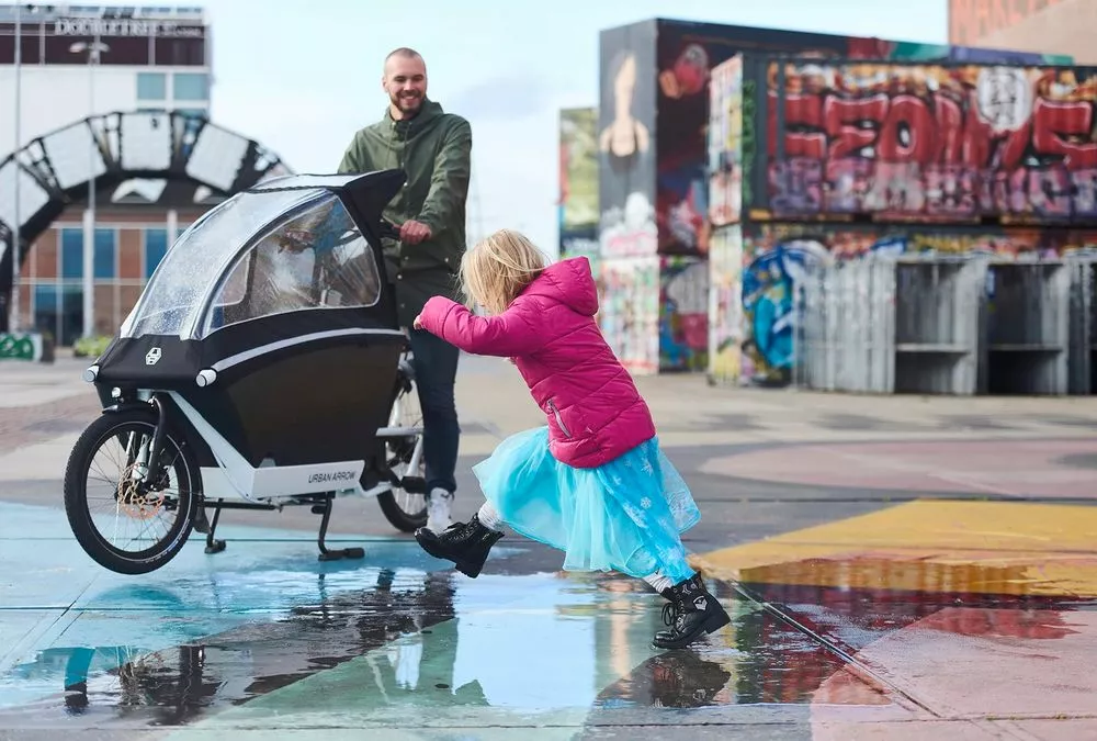 Regenzelten sind für die Urban Arrow Family erhältlich. Für den Family kannst du zwischen zwei Regenzelten wählen, dem Essential und dem Plus. Alle Regenzelten sind mit dem Urban Arrow Poncho kompatibel, sodass nicht nur deine Kinder gut geschützt sind.